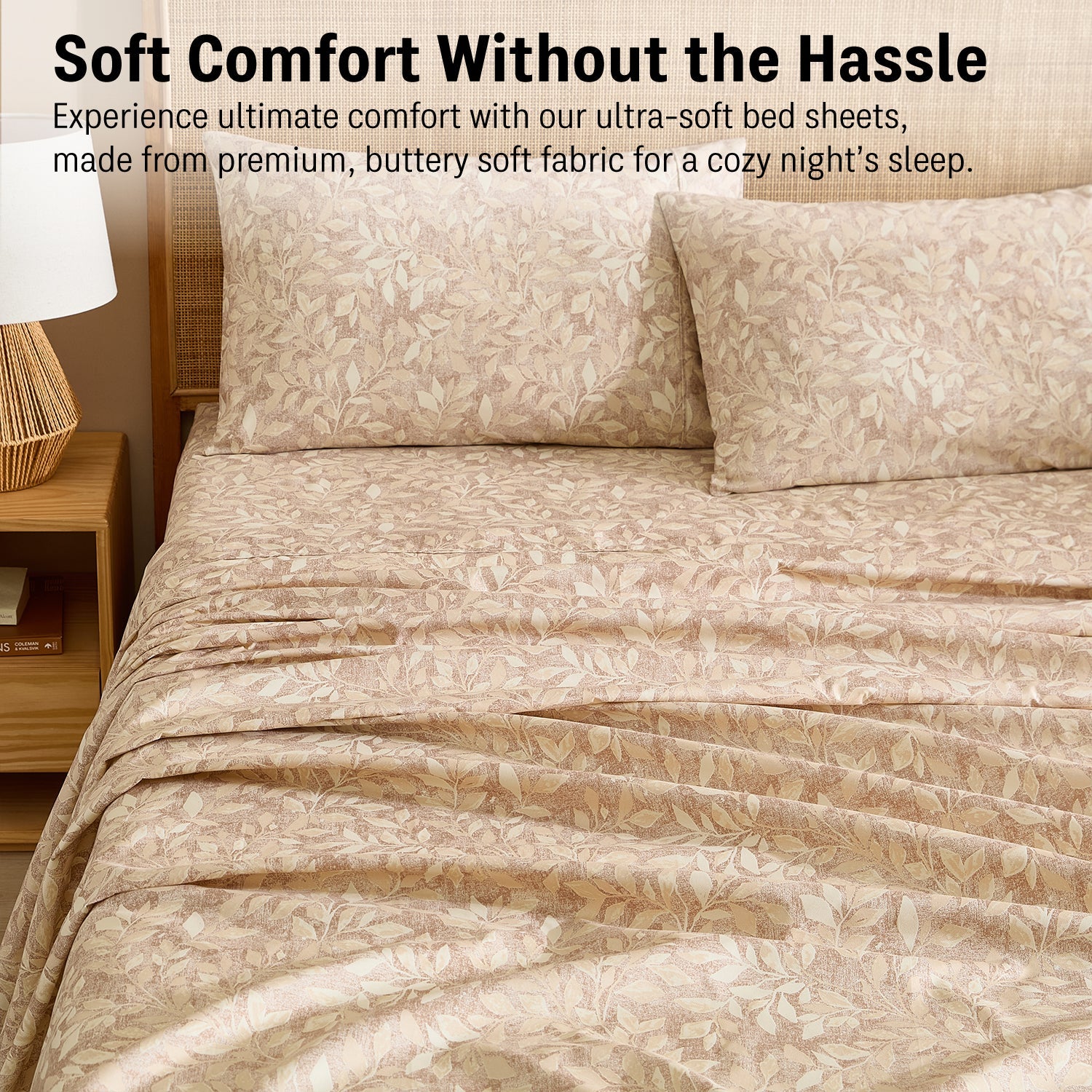 Experience the ultimate in comfort with our double brushed microfiber fabric, which ensures a silky-smooth feel against your skin. These sheets are designed to be wrinkle-resistant, so they look pretty and fresh straight out of the dryer. The deep pockets can accommodate mattresses up to 15 inches deep, providing a snug fit that stays securely in place throughout the night.