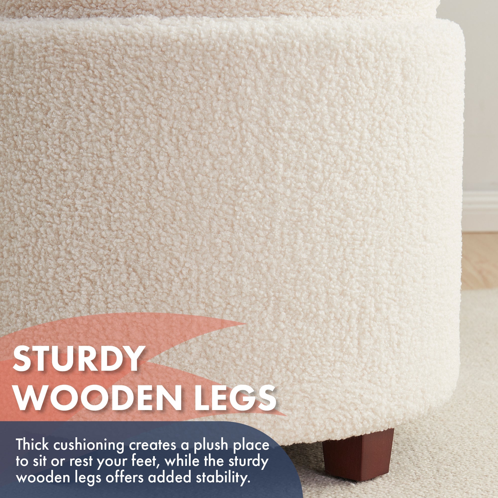 COMFORTABILITY - Sink into a plush oasis with thick cushioning that invites you to sit or rest your feet. The sturdy base ensures stability, while the timeless boucle upholstery endures everyday use in your home, adding a touch of classic beauty.