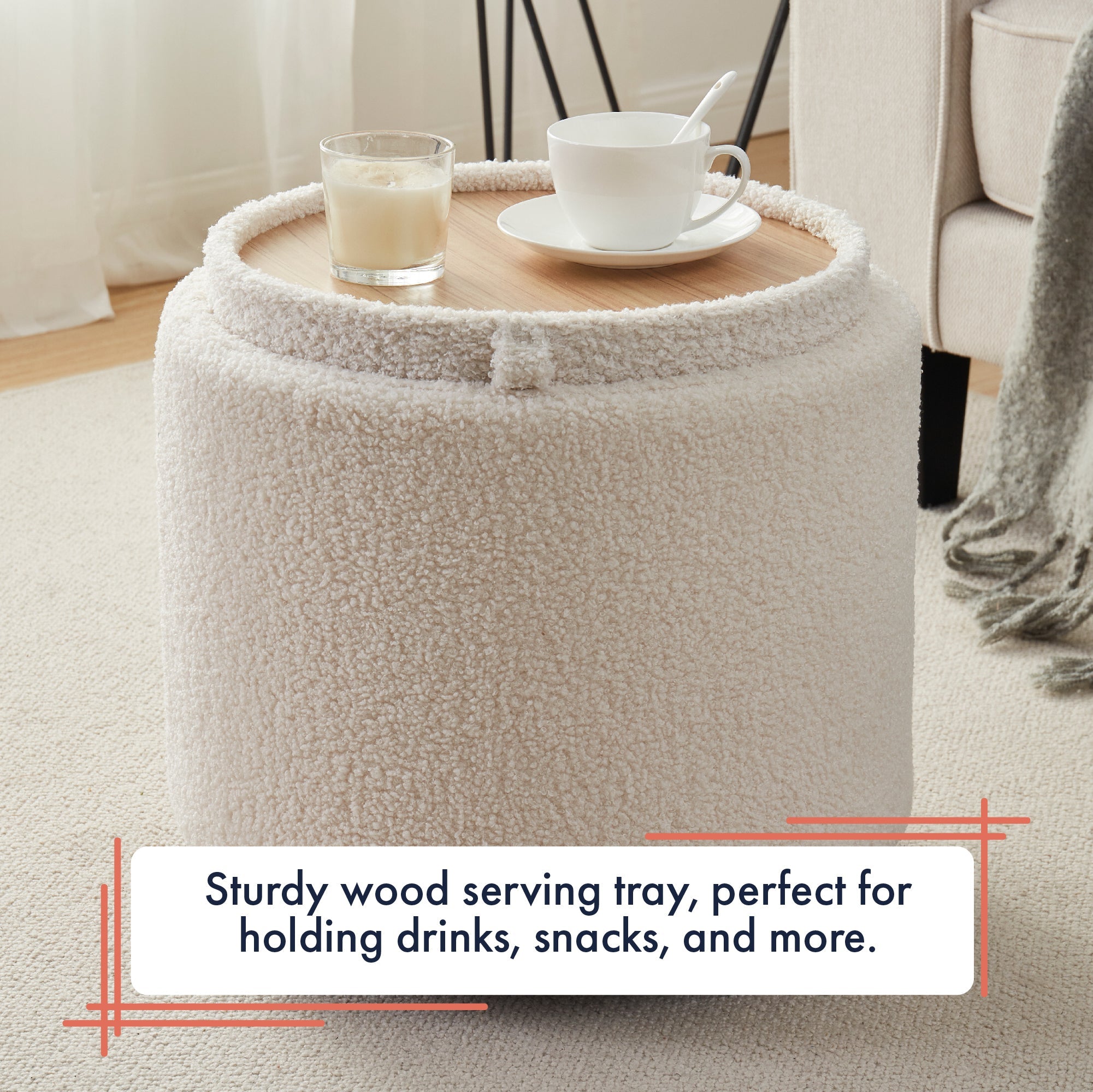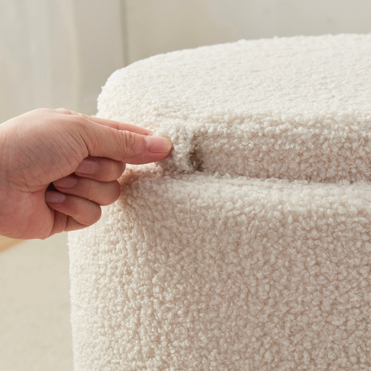 DURABILITY - Enjoy long-lasting performance with this highly durable boucle fabric ottoman. It's designed to withstand daily use in your home and is perfect for storing all of your household items, such as blankets, magazines, and more.