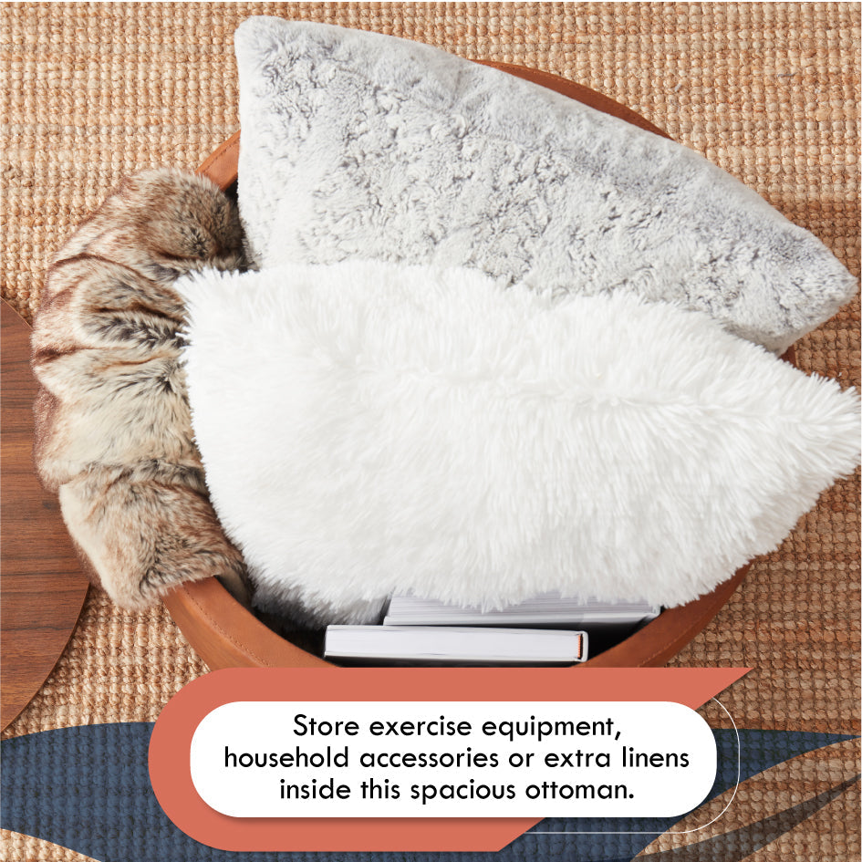 Parker Round Faux Leather Coffee Table Storage Ottoman - Cognac