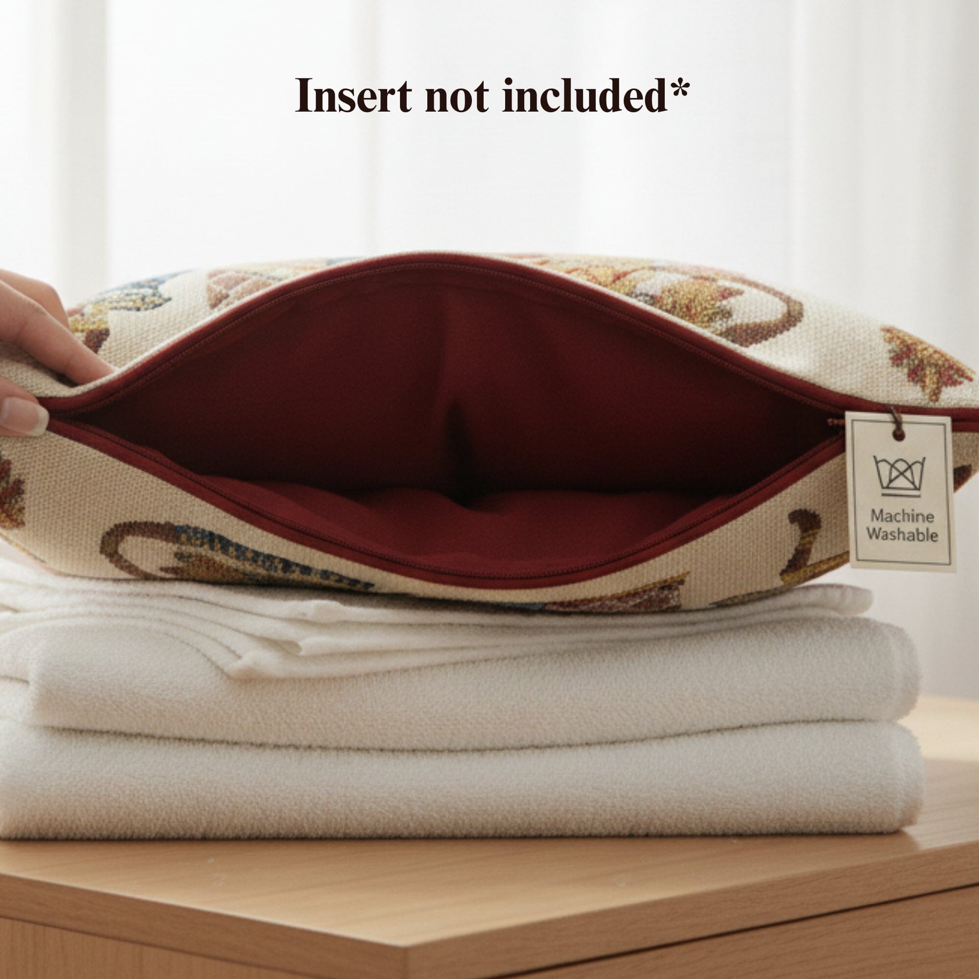 Fresh and bright with ivory/white and red to yellow tone tribal colors stitched pattern on our lightweight, durable and woven cotton pillow covers.