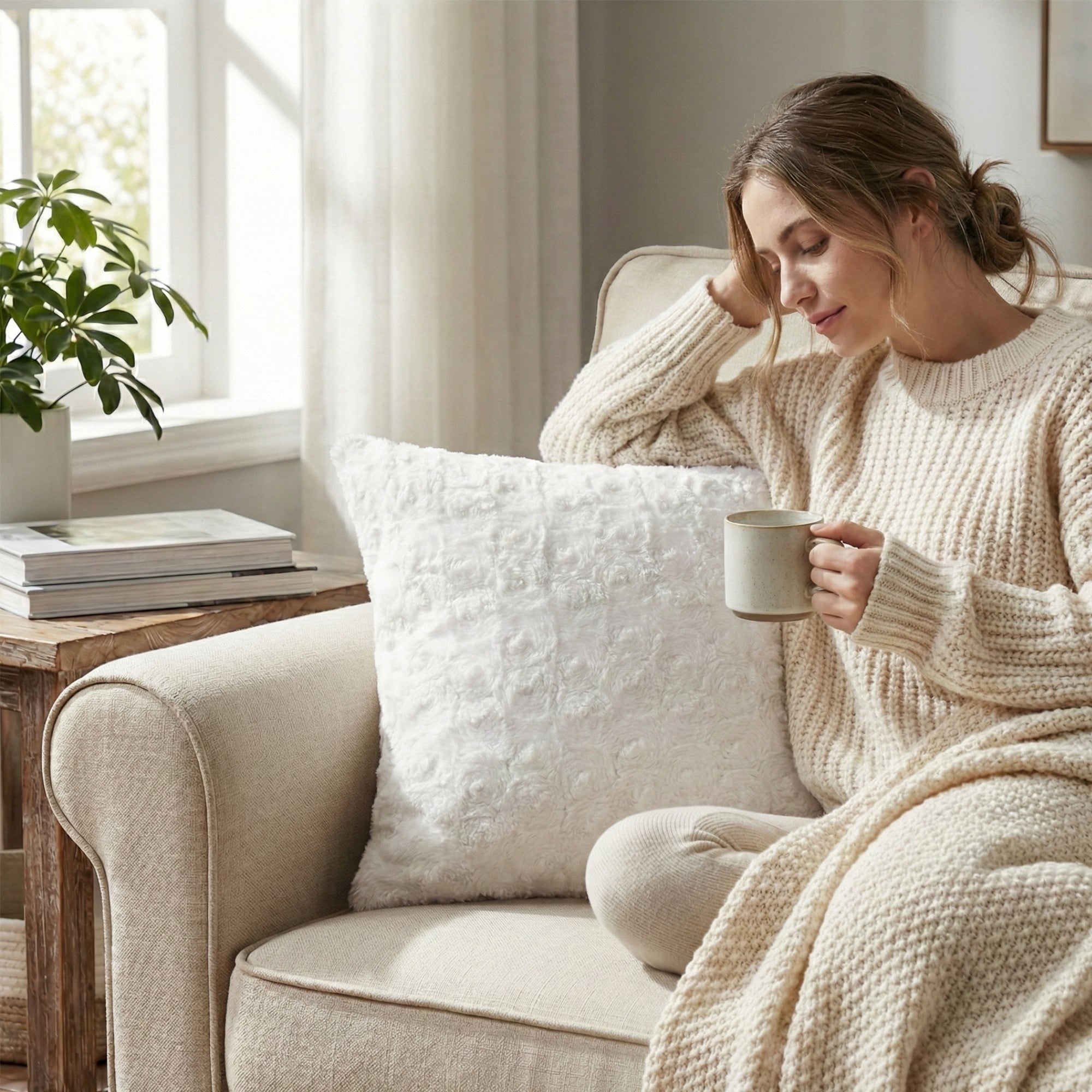 Cuddly and super soft, DaDa Bedding’s Faux Fur Luxury White Roses Throw Pillow Cover will provide a comfortable and soundless sleep with an extra soft faux fur backside for a warm texture.