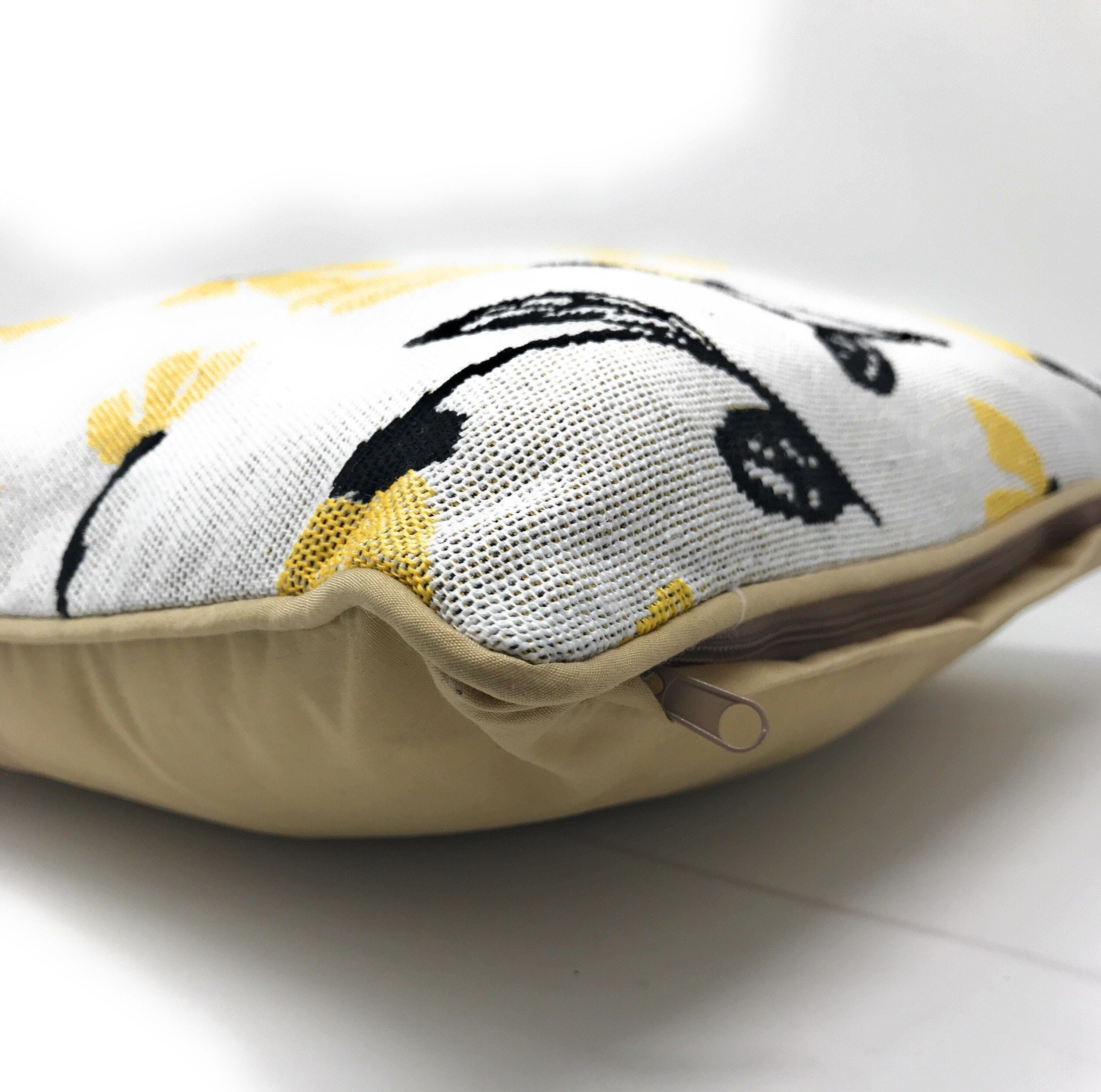 Fresh and bright with ivory/white and yellow floral pattern on our lightweight, durable and woven cotton pillow covers.